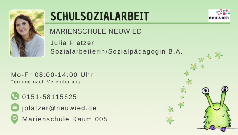 mein Name ist Julia Platzer und ich bin seit dem 01.09.2025 die Schulsozialarbeierin der Marienschule.